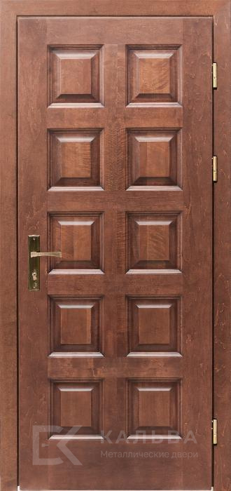 Фото «Входная дверь светлая с геометрическим рельефом и панелью под орех №553»